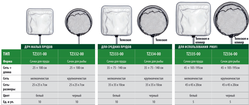 Сачки для пруда Heissner предназначены для вылавливания рыб. В комплекте с телескопической ручкой (кроме TZ331-00 и TZ332-00, у этих сачков ручка не складывается).