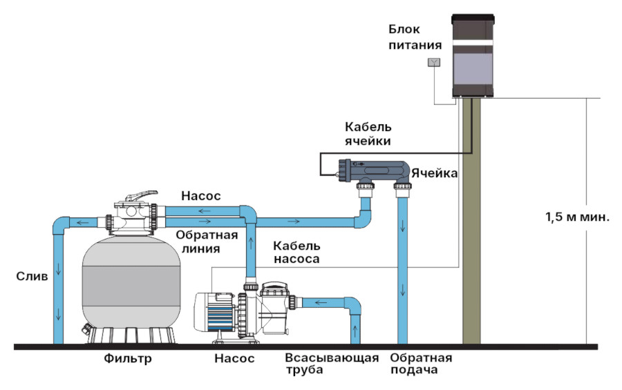 Ключевым элементом системы являются высококачественные титановые электроды (ячейки), которые, помимо высокой износостойкости, обладают функцией самоочистки. Эта функция существенно продлевает срок службы ячеек и снижает необходимость в регулярном техническом обслуживании. Система также контролирует и управляет выходным током ячеек, предотвращая перегрузки и повышение температуры. В случае возникновения каких-либо неисправностей, на дисплее отображается простой и понятный код ошибки, облегчающий диагностику и последующее обслуживание.