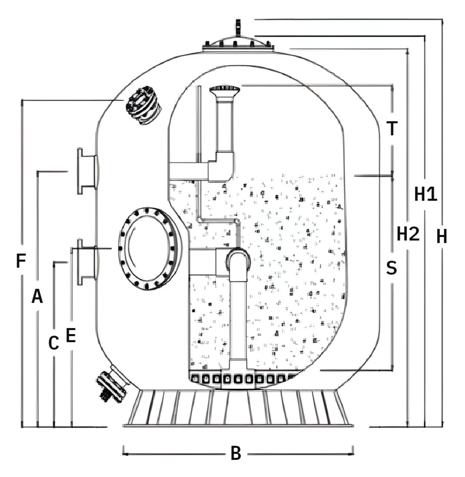 Фильтр AML Santiago Ø=1200 мм, 56 м3/ч, 2,5 бар, засыпка 1,2 м, фланцевое соединение 90 мм | 461 642 | |||