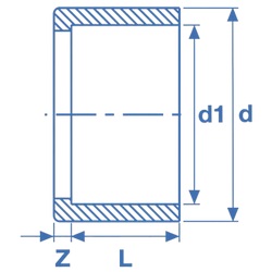 | Диаметр (d x d1), мм | Давление, бар | L, мм | Z, мм | Вес, гр |