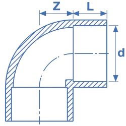 Угол 90° ПВХ, Ø=50 мм, PN=16 (клеевое соединение) / Apipe | 74 | |||