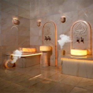 Мраморные курны с подсветкой серии КМ станут украшением любого хамама. Модельный ряд представлен разнообразием форм и размеров. Курны из мрамора являются классическим и наиболее распространенным вариантом. Они способны долго сохранять воду тёплой, не трескаются при механическом воздействии и при высоких температурах. Подсветка добавляет изысканности неотъемлемому атрибуту турецкой парной.
