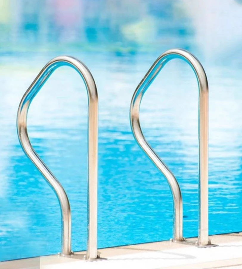 Поручни для лестниц изготовлены из полированной трубы Ø42 мм из нержавеющей стали марки 304. Правильный выбор и правильное размещение поручней и лестниц значительно повышают безопасность любого бассейна.