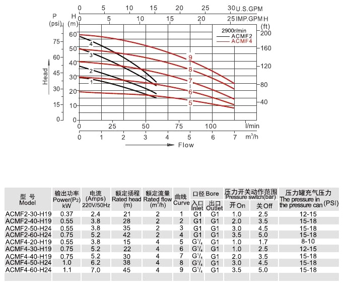 Технические и напорные характеристики