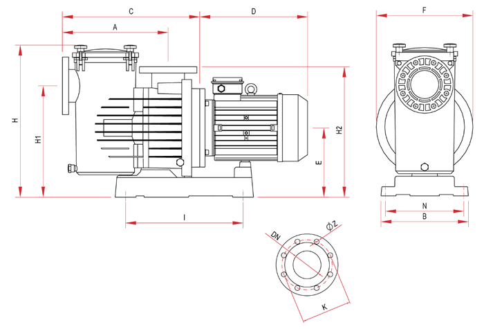 | Модель | A | B | C | D | E | F | H | H1 | H2 | I | K | N | DN | Z | Вес, кг |
