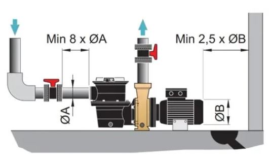 Корпус префильтра выполнен разборным, верхнюю часть можно установить в 7 различных положений относительно нижней, что позволяет направлять входное отверстие в разные стороны, облегчая установку насоса в условиях ограниченного пространства.