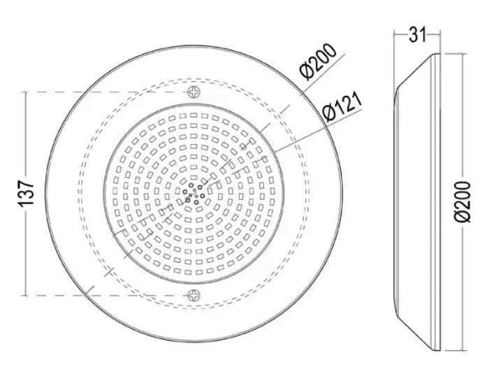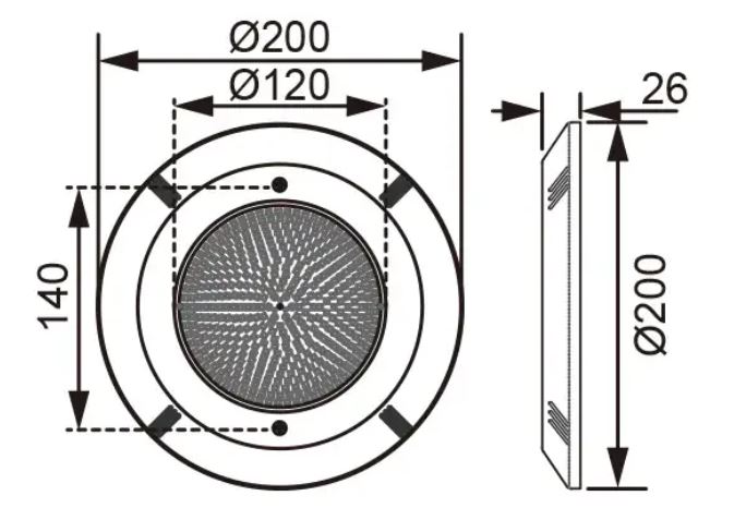 Высокий класс водонепроницаемости IP68 обеспечивает полную защиту от проникновения влаги и пыли. Прожектор подходит для бассейнов, облицованных плиткой и плёнкой, и надёжно работает даже при полном погружении. Широкий угол рассеивания света в 120 градусов позволяет равномерно осветить достаточно большую площадь, исключая темные зоны и создавая комфортное освещение всей зоны отдыха.