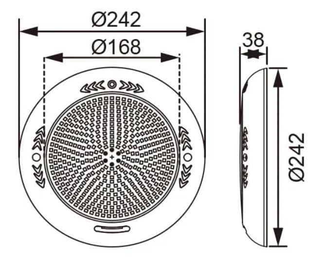 Высокий класс водонепроницаемости IP68 обеспечивает полную защиту от проникновения влаги и пыли. Прожектор подходит для бассейнов, облицованных плиткой и плёнкой, и надёжно работает даже при полном погружении.