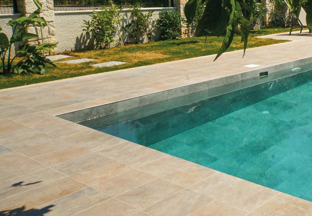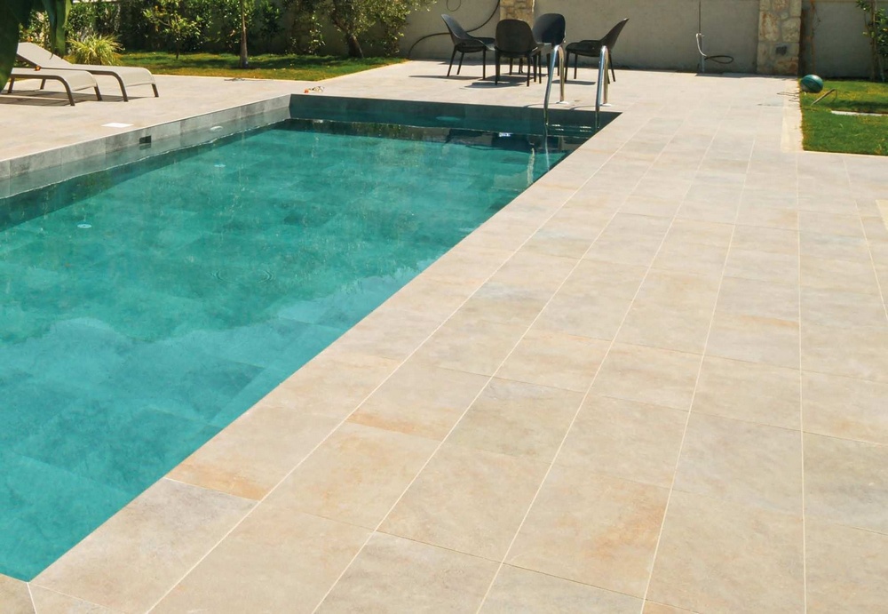 - Она придает бассейнам безупречный вид, идеально сочетаясь с фарфоровой плиткой для бассейнов.