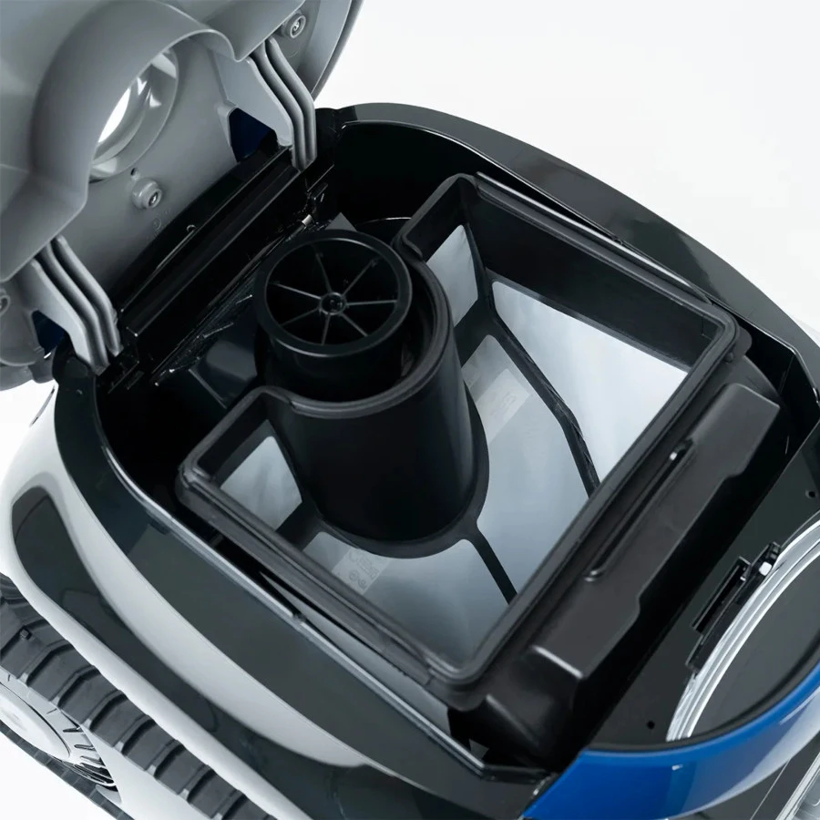 Удобство использования: фильтр, доступный сверху, обеспечивает реальный комфорт использования на ежедневной основе. Быстрая эвакуация воды облегчает извлечение робота из бассейна. Действительно, байпас и задняя решетка помогают быстро откачивать воду, содержащуюся внутри фильтра.