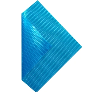 Покрывало представляет собой материал синего цвета с пузырьками воздуха, хорошо держится на зеркале воды. Данный материал имеет прочную структуру и устойчив к воздействию ультрафиолетовых лучей.