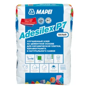 Mapei Adesilex P7 — тиксотропный цементный клей для керамической плитки и керамогранита малого и среднего формата. Обеспечивает прочную фиксацию без сползания и относится к классу C2T.