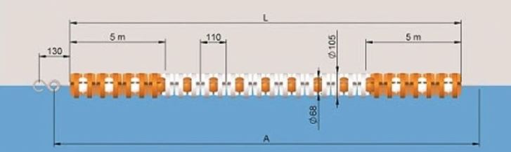 Разделительная дорожка "Москва" - предназначена для спортивных бассейнов. Поплавки изготовлены из пластика. Трос изготовлен из полиэстера. Поплавки могут быть в сочетании с белым цветом и с красным, оранжевым, синим.