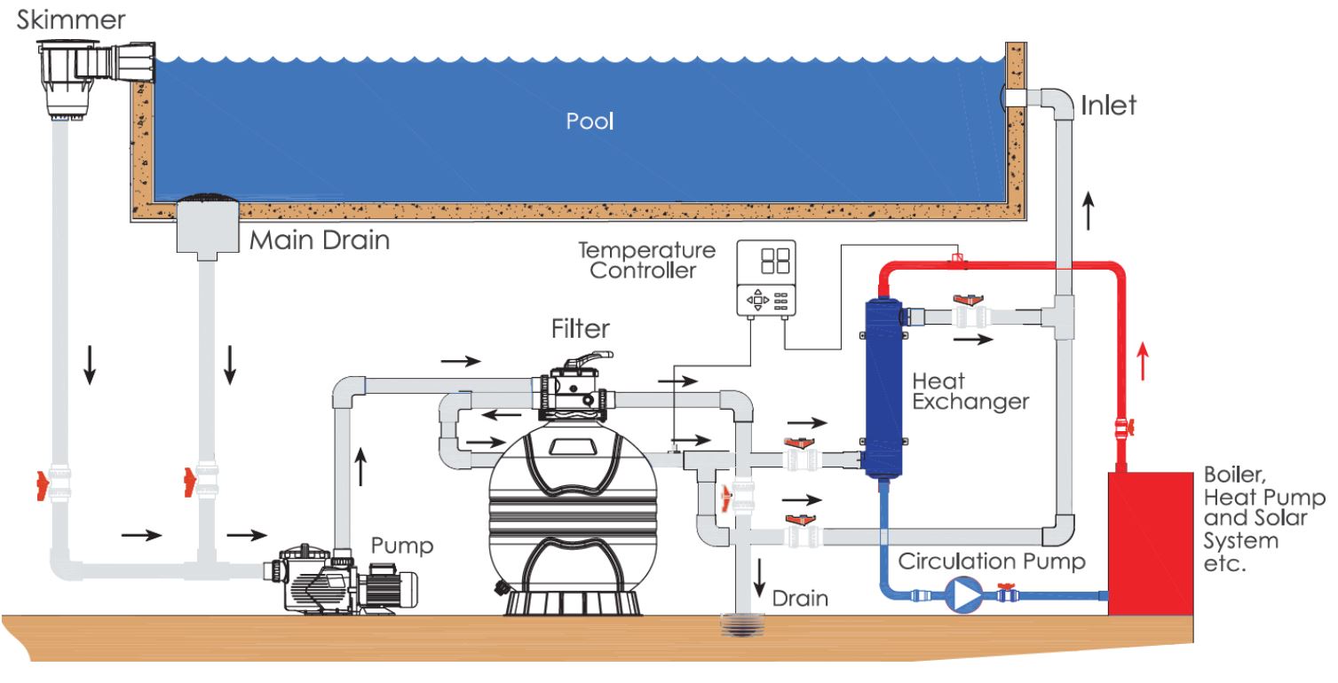 Конструкция теплообменника базируется на применении спиральных титановых трубок. Эта геометрия обеспечивает максимальную площадь контакта между теплоносителем (например, водой из солнечного коллектора, теплового насоса или бойлера) и водой в бассейне. Такая конструкция значительно улучшает эффективность теплопередачи, что приводит к существенной экономии энергии по сравнению с традиционными теплообменниками. Равномерное распределение тепла по всей поверхности теплообменника предотвращает образование "холодных" зон и обеспечивает оптимальную температуру воды во всем бассейне.