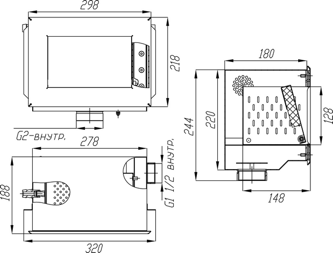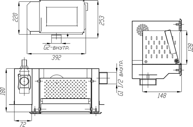 - Клапан автодолива или ввод для кабеля датчика уровня (в зависимости от модификации)